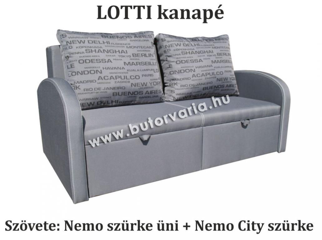 A Lotti kanapé kiágyazható, és két darab különálló nagy méretű, mély ágyneműtartóval rendelkezik. melynek 26 cm a mélysége. Összezárt állapotában kis hely igényű, praktikus. A kanapé ülő és fekvőfelülete magasan van, így bátran ajánljuk idősebbeknek és a nehezebben mozgó embereknek. A kanapé csak extra szivacsos kivitelben készül.